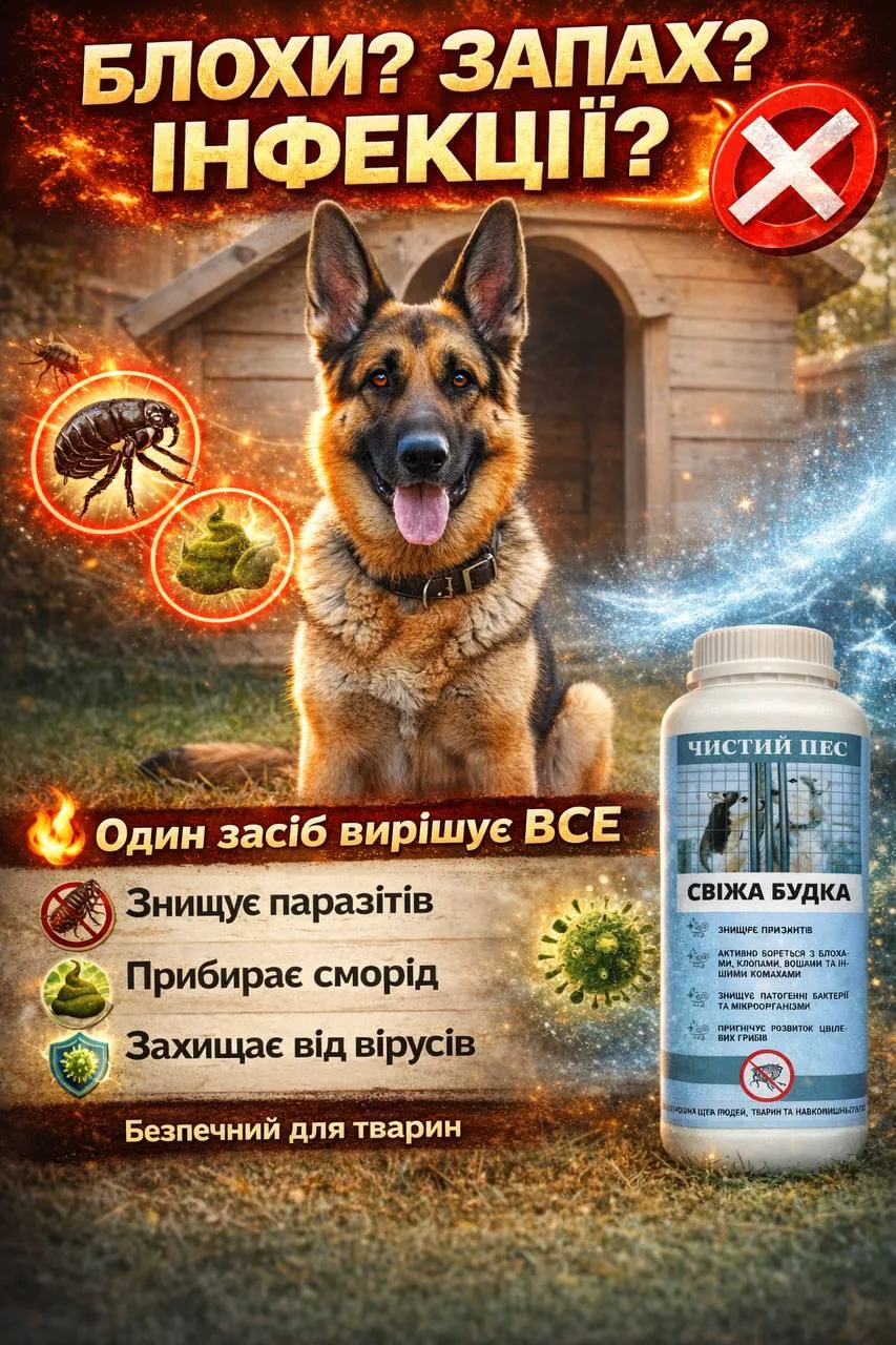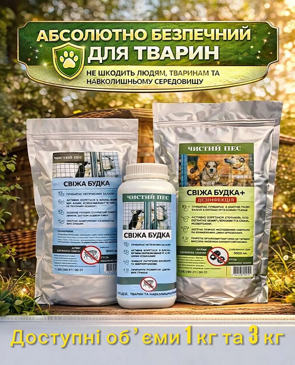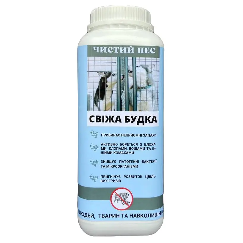 Це простий і безпечний засіб для догляду за місцями утримання собак – будками, вольєрами та іншими приміщеннями. Завдяки натуральному складу, він не шкодить тваринам, людям і довкіллю.